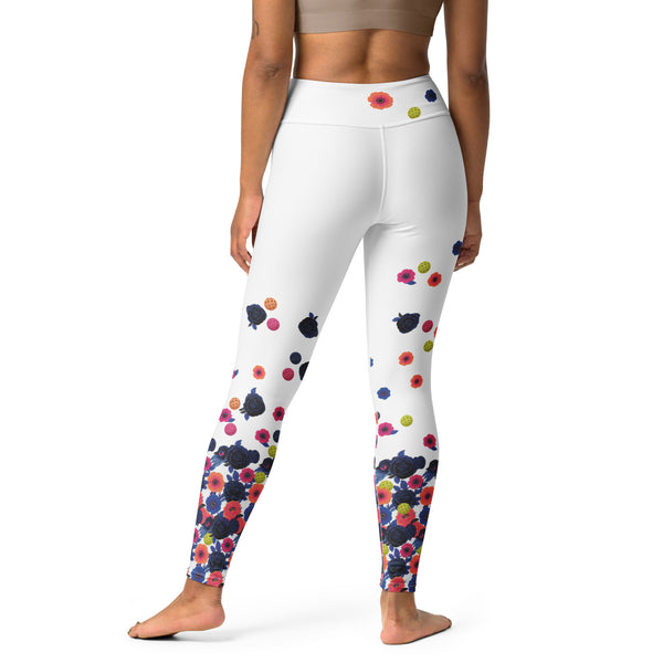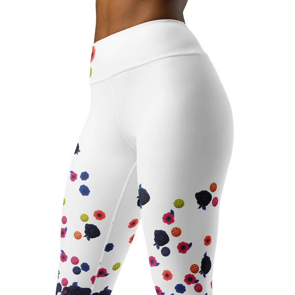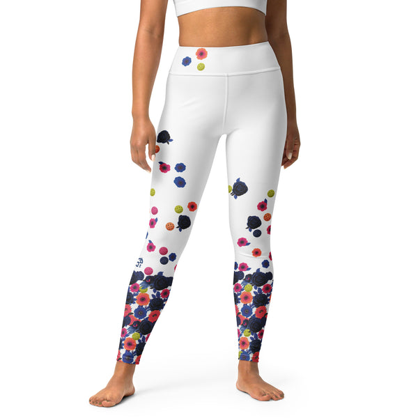 The Pickleball en Fleurs™ High-Waisted Leggings blend modern elegance with pickleball passion. Featuring an original, art-forward print of poppies and roses intertwined with subtle pickleball details, this design brings fresh energy to the court and beyond. Shades of blue, fuchsia, and orange bloom beautifully against a crisp white background—bold, feminine, and effortlessly sporty.